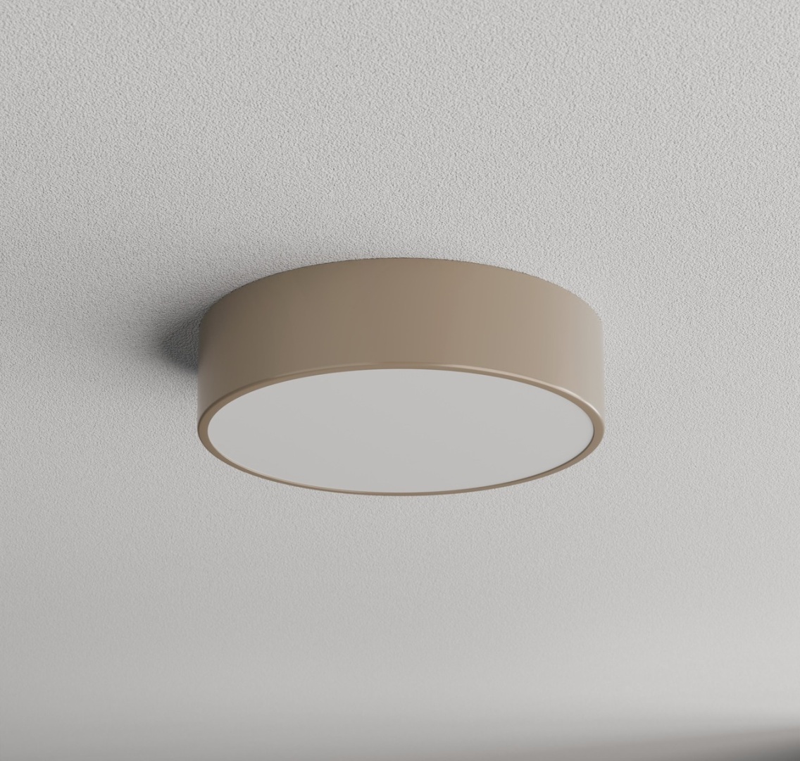 Ta lampa sufitowa ma średnicę 30 cm i wysokość tylko 7,5 cm, dzięki czemu doskonale wpasuje się w różne wnętrza. Jej kształt jest okrągły, a kolor beżowy dodaje jej subtelności i elegancji. Lampę sufitową Plafon CLEO wykonano z materiałów najwyższej jakości – obudowa oraz podstawa są metalowe malowane proszkowo, klosz wykonany jest z tworzywa. Innowacyjny system montażu ukryty wewnątrz oprawy powoduje, że żadne śrubki nie szpecą powierzchni lampy.