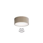 Plafon wykonany ze stali i szkła w eleganckim, szarym kolorze, wyposażony w mikrofalowy czujnik ruchu i zmierzchu.